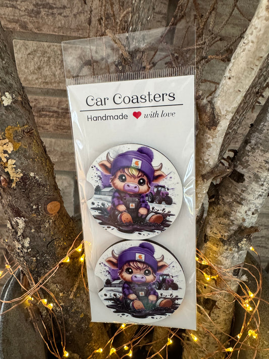 Country Girl Highland Cow Car Coasters – Set of 2