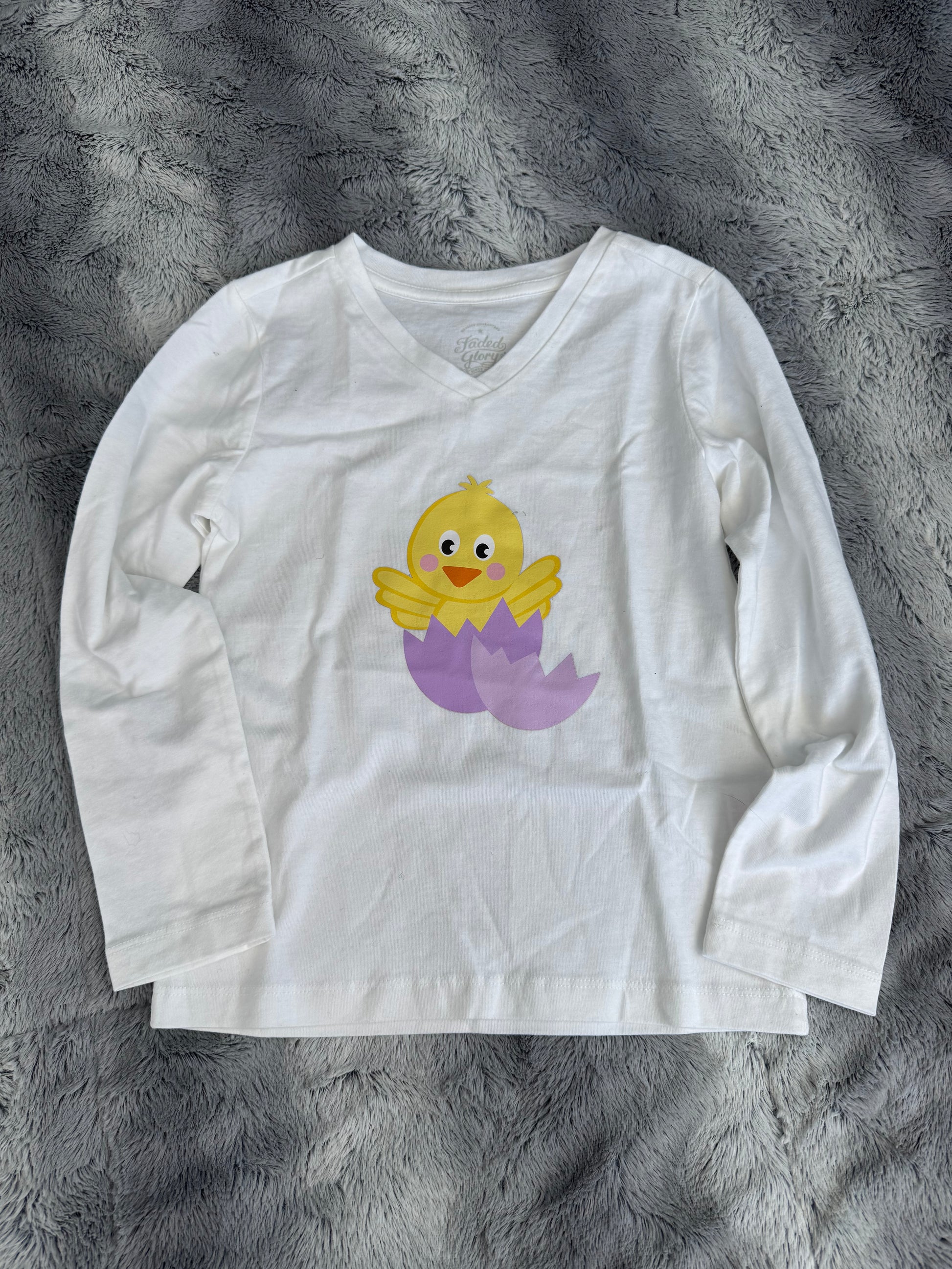 Sweet, simple, and full of springtime charm! This adorable design features a bright yellow chick popping out of a soft purple egg, complete with rosy cheeks and tiny wings ready to celebrate the season.