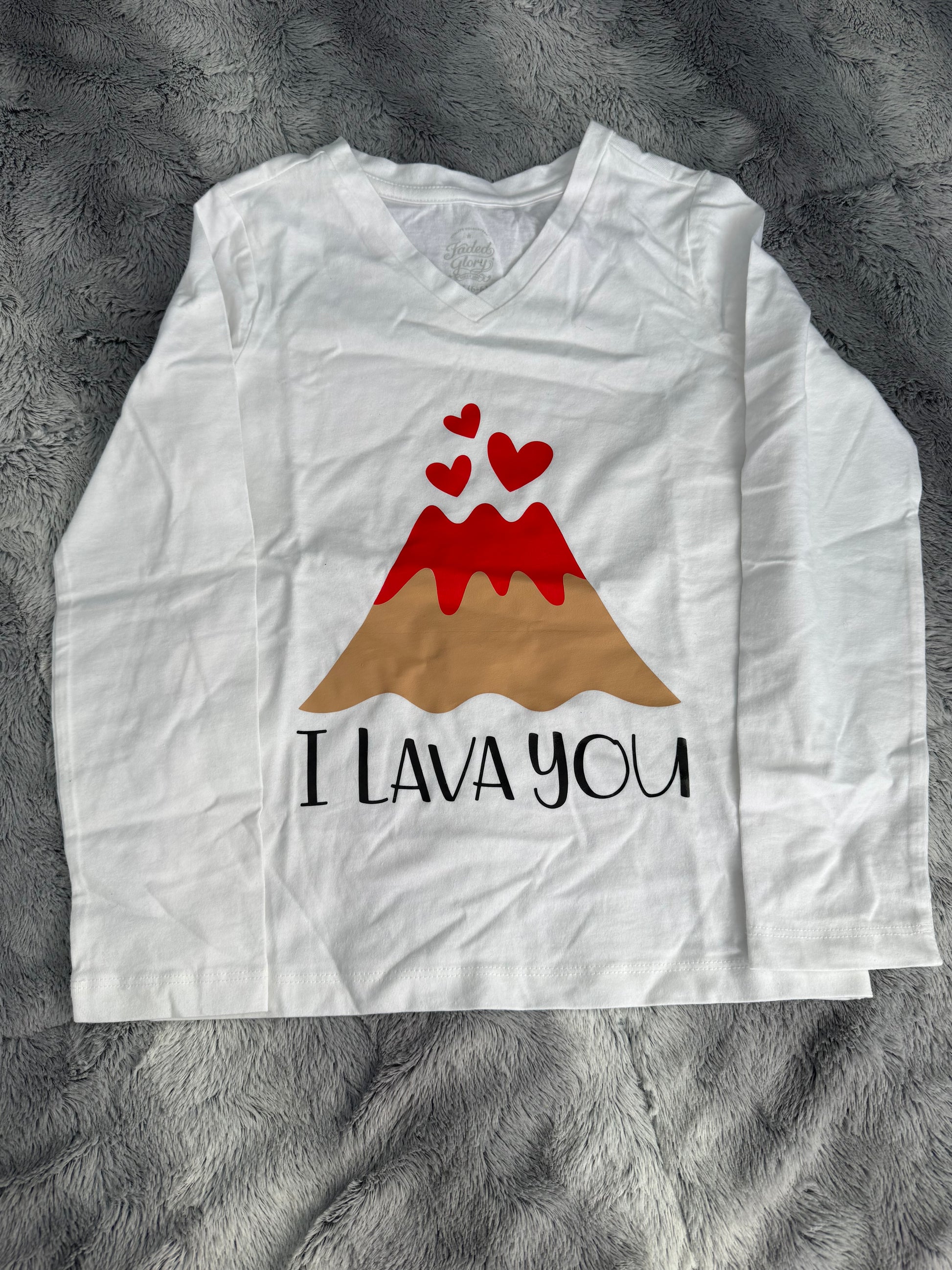 Sweet, punny, and full of love — this “I Lava You” shirt is the perfect way to show your fiery feelings! Featuring a cute volcano with heart-shaped lava flowing from the top, this playful design adds a fun twist to Valentine’s Day style.
