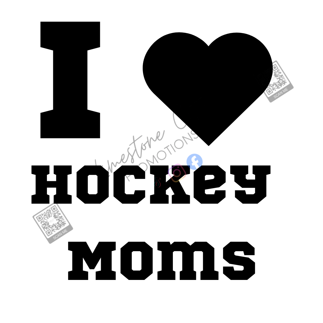 Show your love for the real MVPs of the rink with this fun “I Love Hockey Moms” car decal. Featuring bold lettering and a heart graphic, this design is perfect for players, fans, and proud supporters who know hockey moms keep everything running.